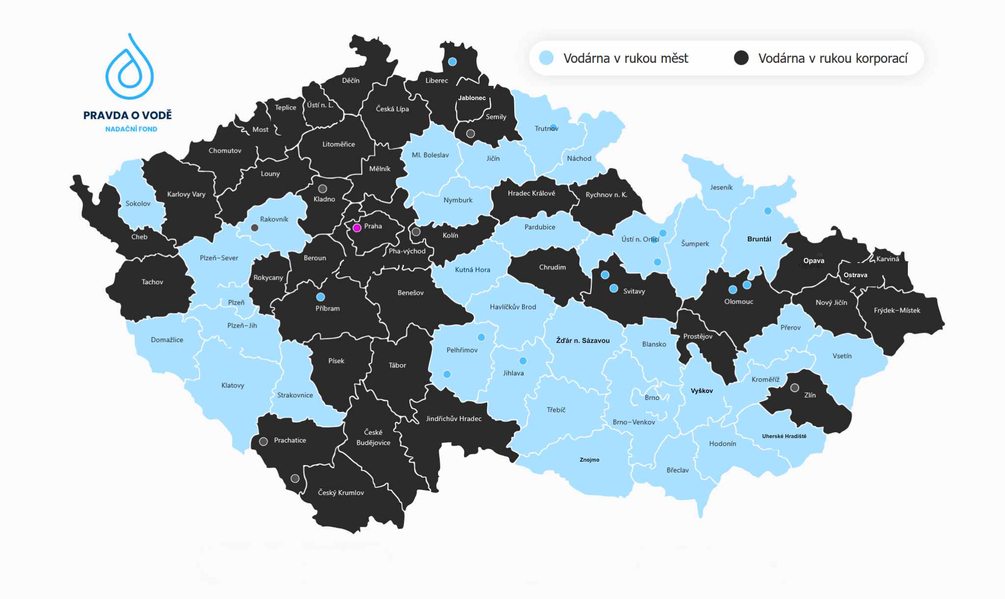 Ve více než 1/2 republiky nemají města prodej vody a rozhodování o vodě ve svých rukou. Z pohledu peněžních toků a zisků z vody je to téměř 70%.